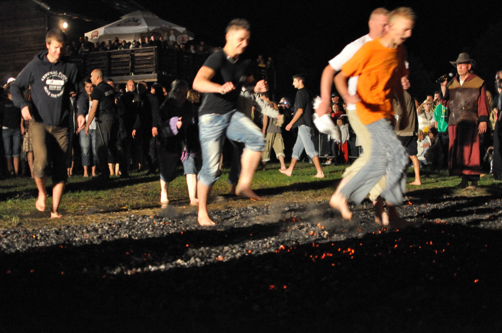 En komt in de avond, tijdens het vuurdansen, de eerste hulp bij ongelukken nog opdraven? Niet nodig, elke vuurdanser weet hoe hij of zij de voeten heel houdt. De vuursintels zijn namelijk bedekt met een dun laagje zwarte as. En laat dit nu net een isolerend laagje zijn over de gloeiende kolen heen. Dans je daar te langzaam overheen, dan helpt het laagje niet meer en verbrand je je voeten. Ga je te snel, dan beschadig je de aslaag en heeft het vuur ook meteen vat op je voeten. Dans je rustig en gewoon, dan is er niets aan de hand. Maar als je een ikoonbord meeneemt op je dans, dan moet je die niet laten vallen. Want als de schilderachtige Helena het vuur raakt, gaat ze alsnog in vlammen op. Het houten kruis van Christus had ze dan kunnen redden, maar haar houten ikoon vat meteen vlam.